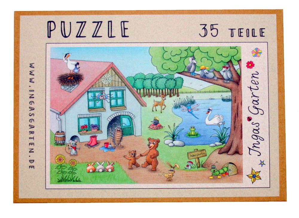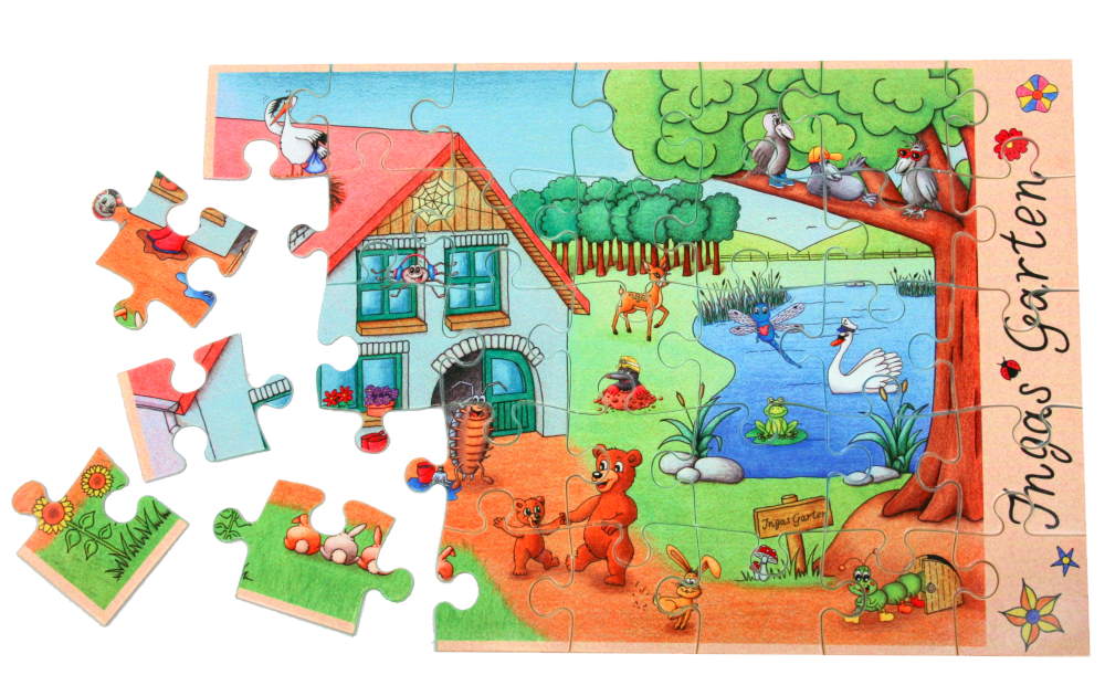Das Puzzle wird in Handarbeit in unserer Ingas Garten Werkstatt bedruckt und ihr bekommt es in einer Pappschachtel geliefert.