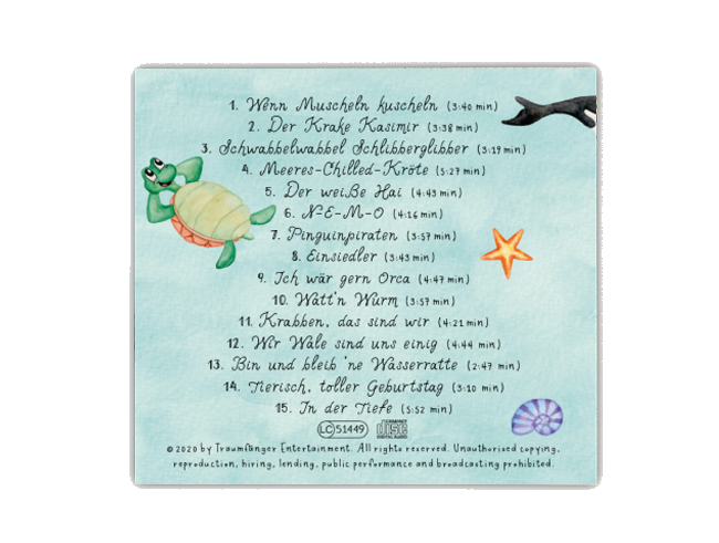 Lustige, spannende, aber auch Geschichten zum Nachdenken haben den Weg auf Heiko Fängers drittes Kinderlieder-Album mit 15 Songs über die Tiere unserer Meere gefunden. Wie immer – Musik für Klein & Groß!